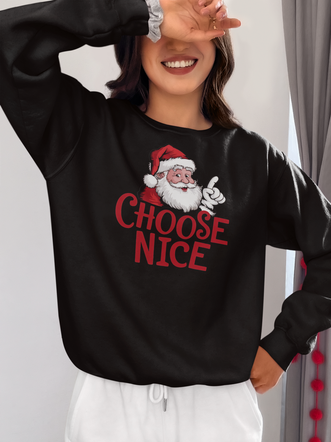 Choose Nice Santa Sweatshirt|Naughty or Nice|Festive Gift|Santa Clause Gifts|Fun Holiday Clothing|Christmas Gifts|Secret Santa