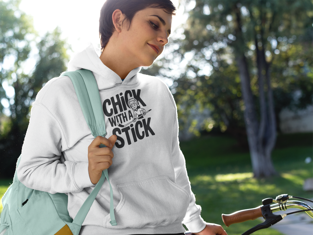 Chick With A Stick Hockey Funny Sweatshirt|Gifts For Woman Hockey Players|Hockey Mom|Favorite Hockey Shirt