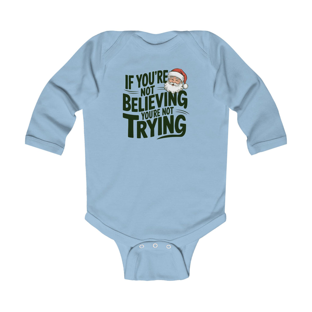 If You're Not Believing You're Not Trying Funny Christmas Long Sleeve Onesie| Kids Santa Believer| Santa Fan|Newborn Christmas Gift