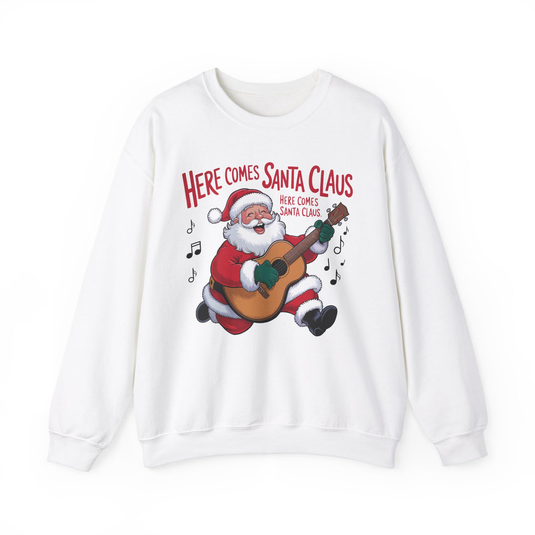 Here Comes Santa Claus Sweatshirt|Santa Guitar|Gift For Guitar Teacher|Chorus Christmas Gift|Caroler Shirt|Rock and Roll Santa