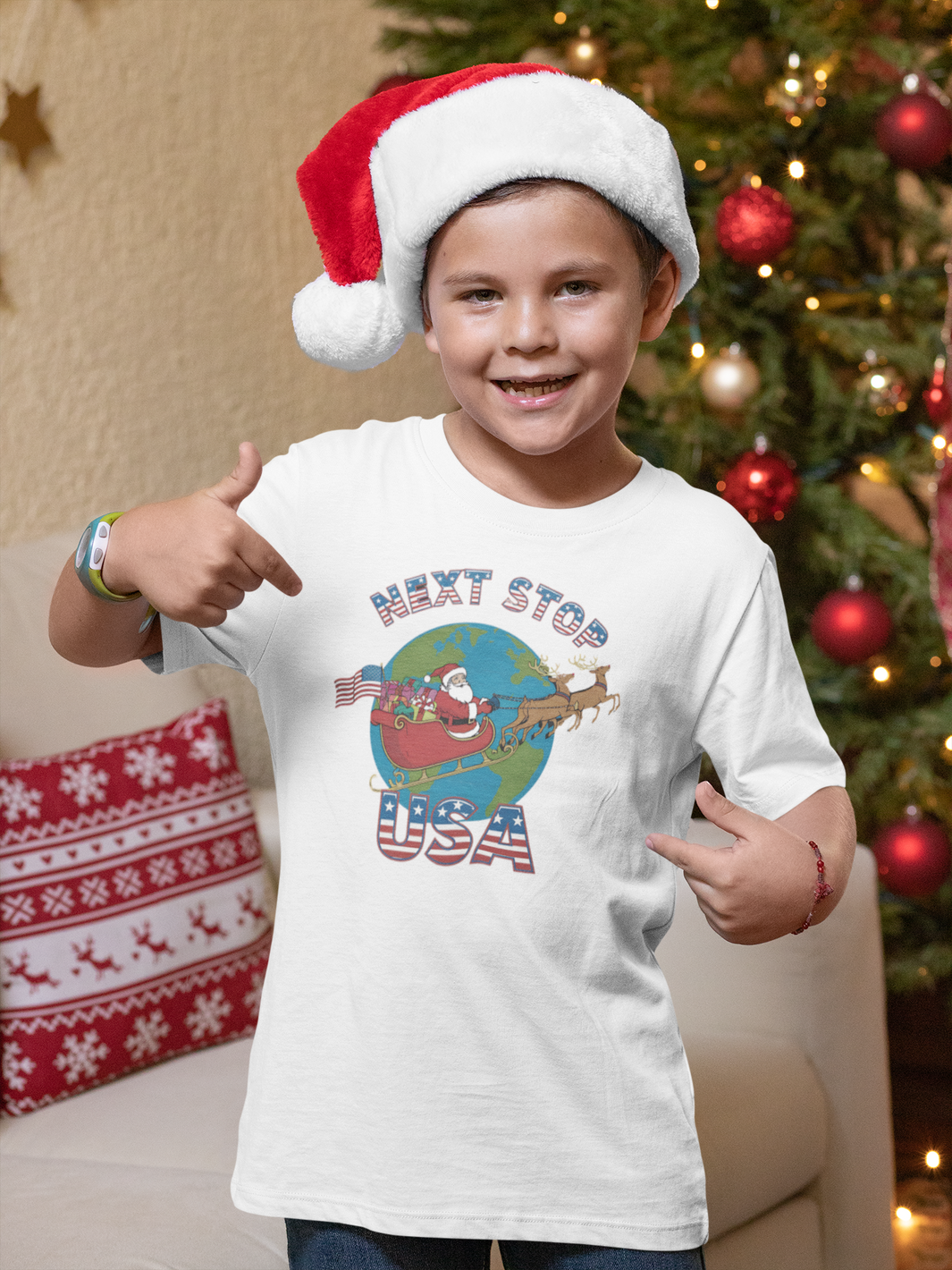 Next Stop USA Kids Holiday T-Shirt|Patriotic Shirt|Kids American Pride Shirt|School Holiday Party Shirt