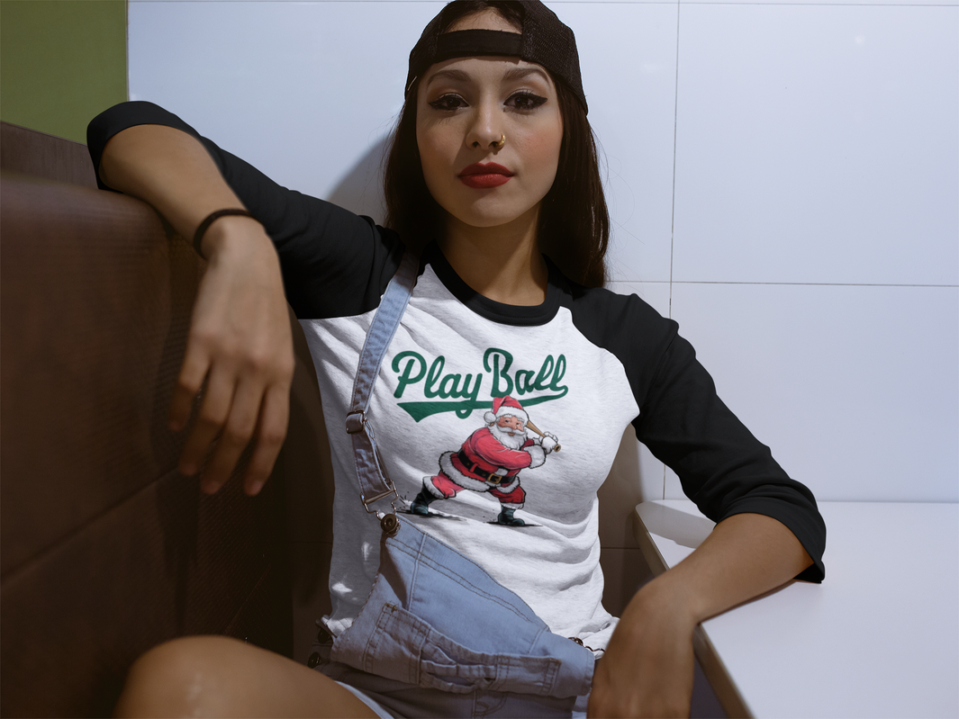 Play Ball 3/4 sleeve Baseball Shirt|Play Ball Santa Shirt|Santa Claus Baseball Gift|