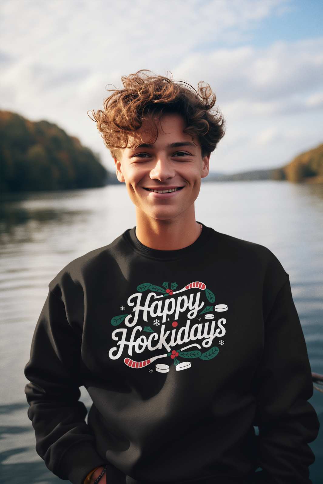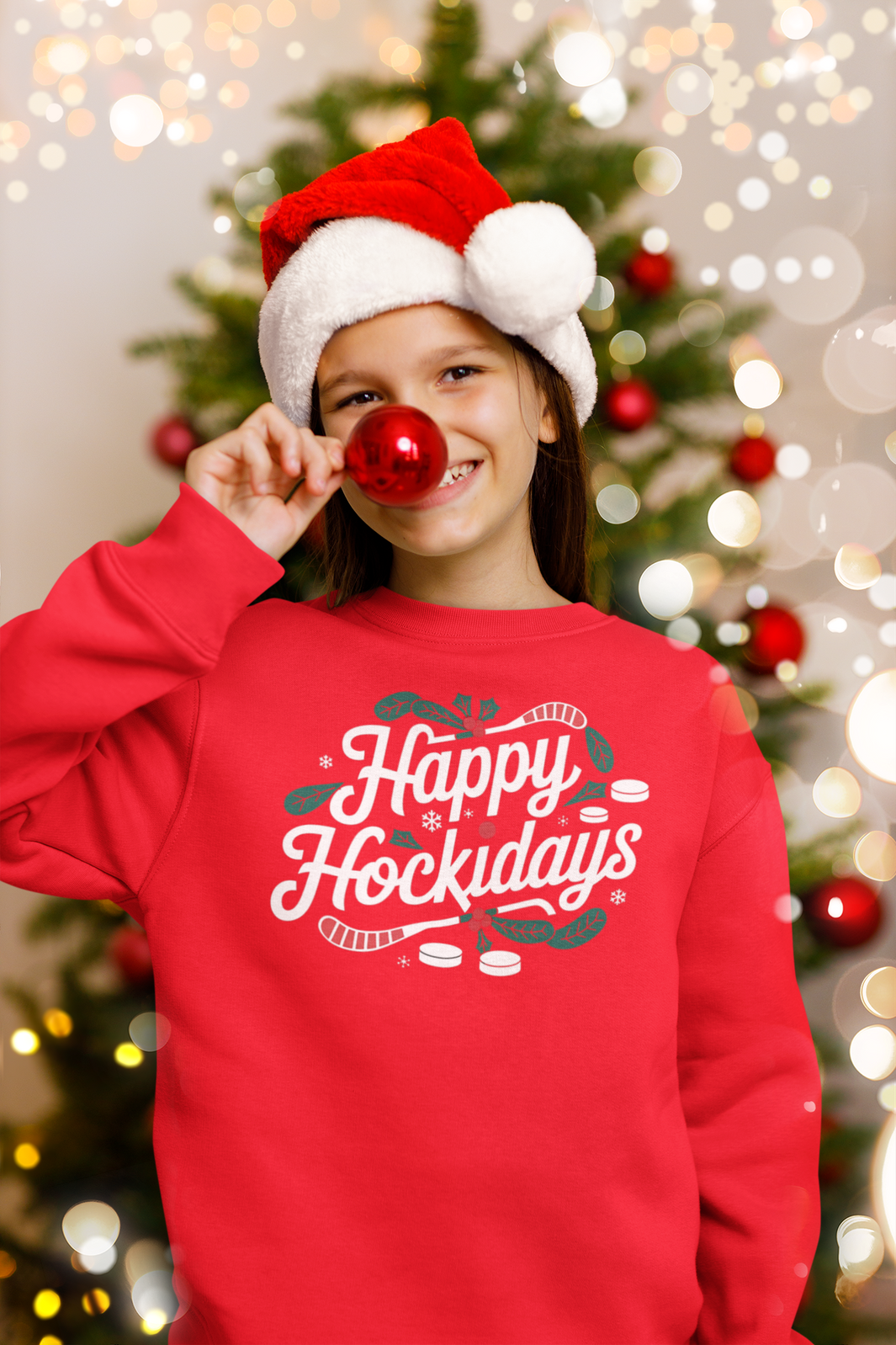 Happy Hockidays Hockey Youth (Kids) Sweatshirt|Hockey Mom Shirt|Hockey Kid Gift|Favorite Hockey Shirt|Funny Hockey Shirt