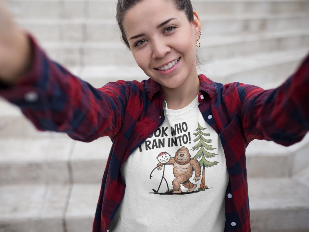 Bigfoot Look Who I Ran Into|Funny Bigfoot Shirt|Bigfoot Shirt|Sasquatch gifts|Favorite Bigfoot Shirt|Stickman Shirts