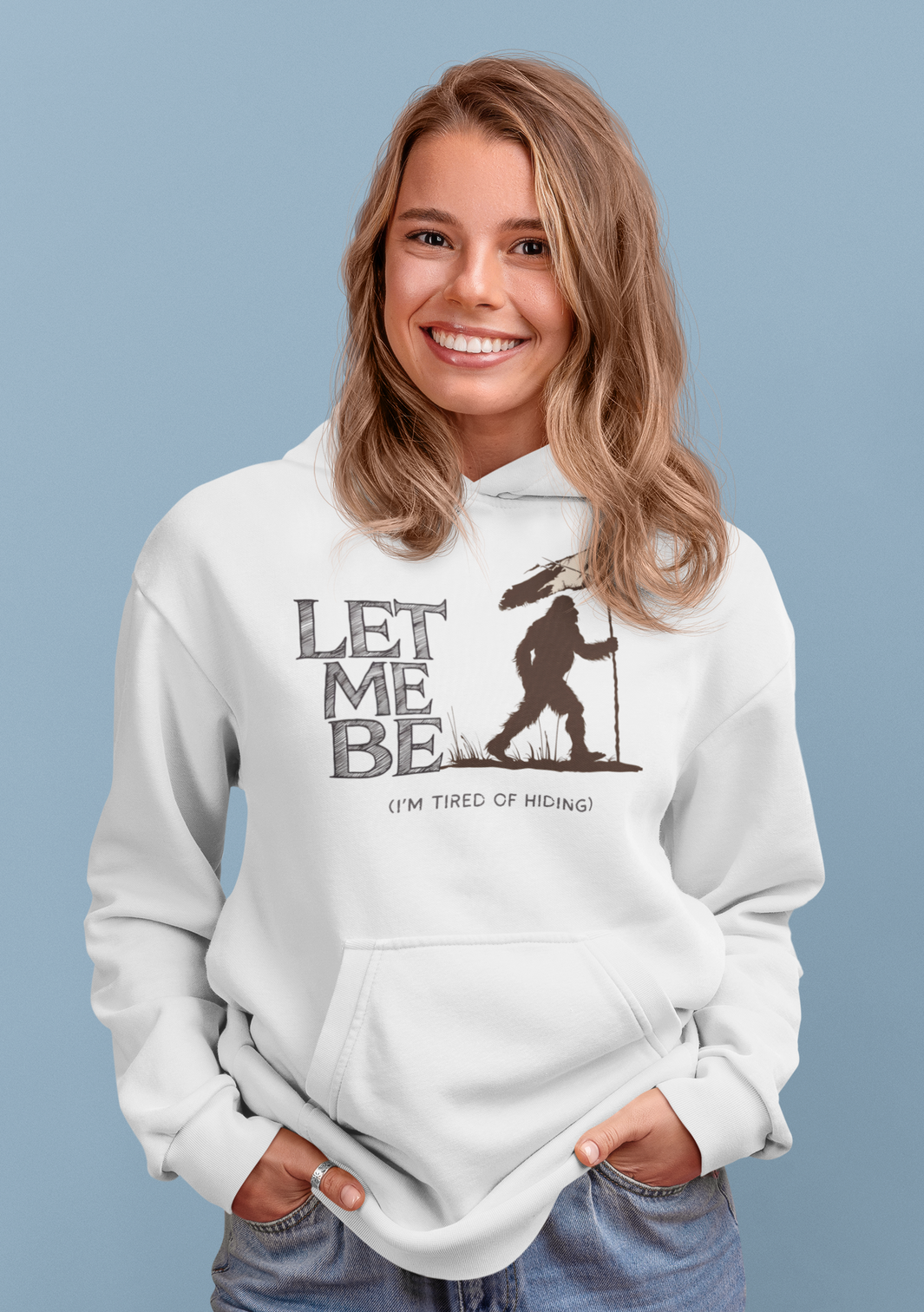 Let Me Be I'm Tired Of Hiding Hooded Sweatshirt|Best Bigfoot Gifts|Friends of Bigfoot|Favorite Bigfoot Shirt