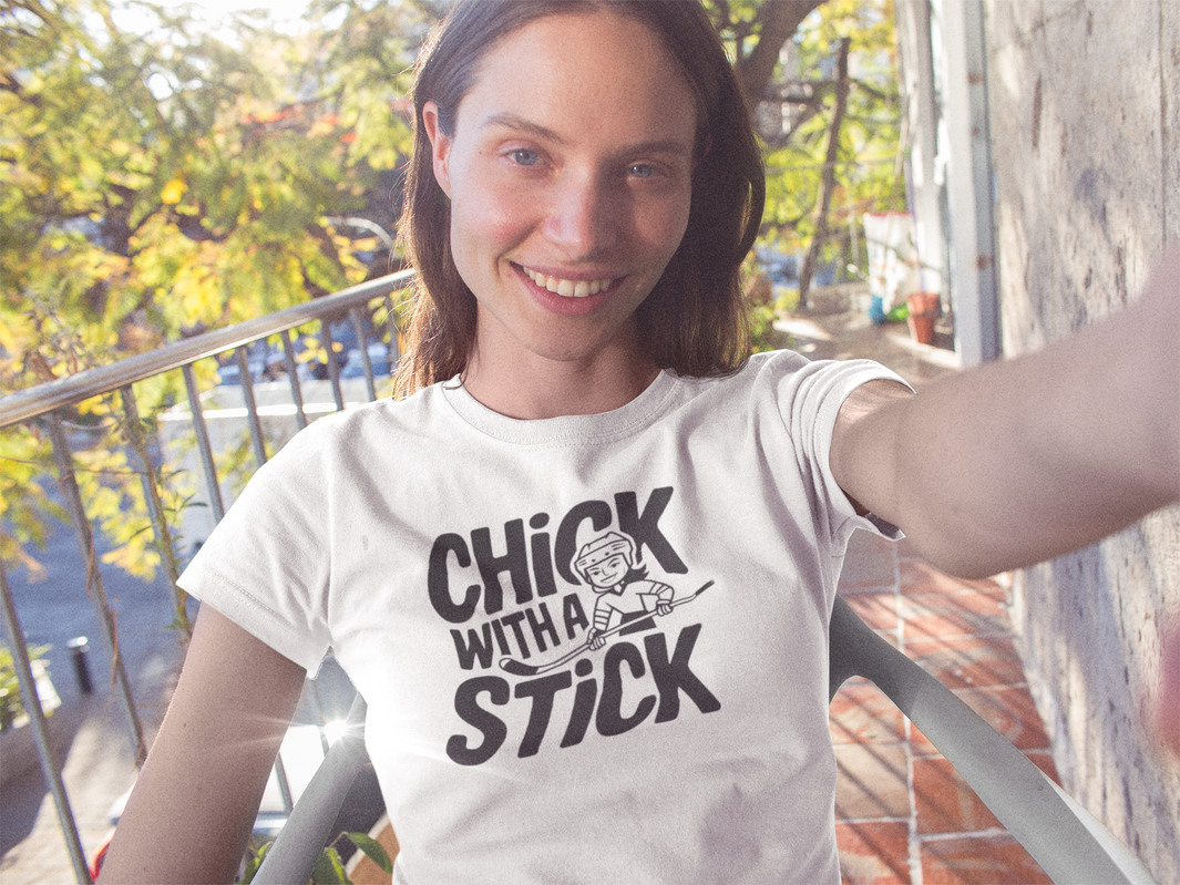 Chick With A Stick Funny Womans Hockey T-Shirt|Gift For Woman Hockey Players, Hockey Mom's|Love Hockey