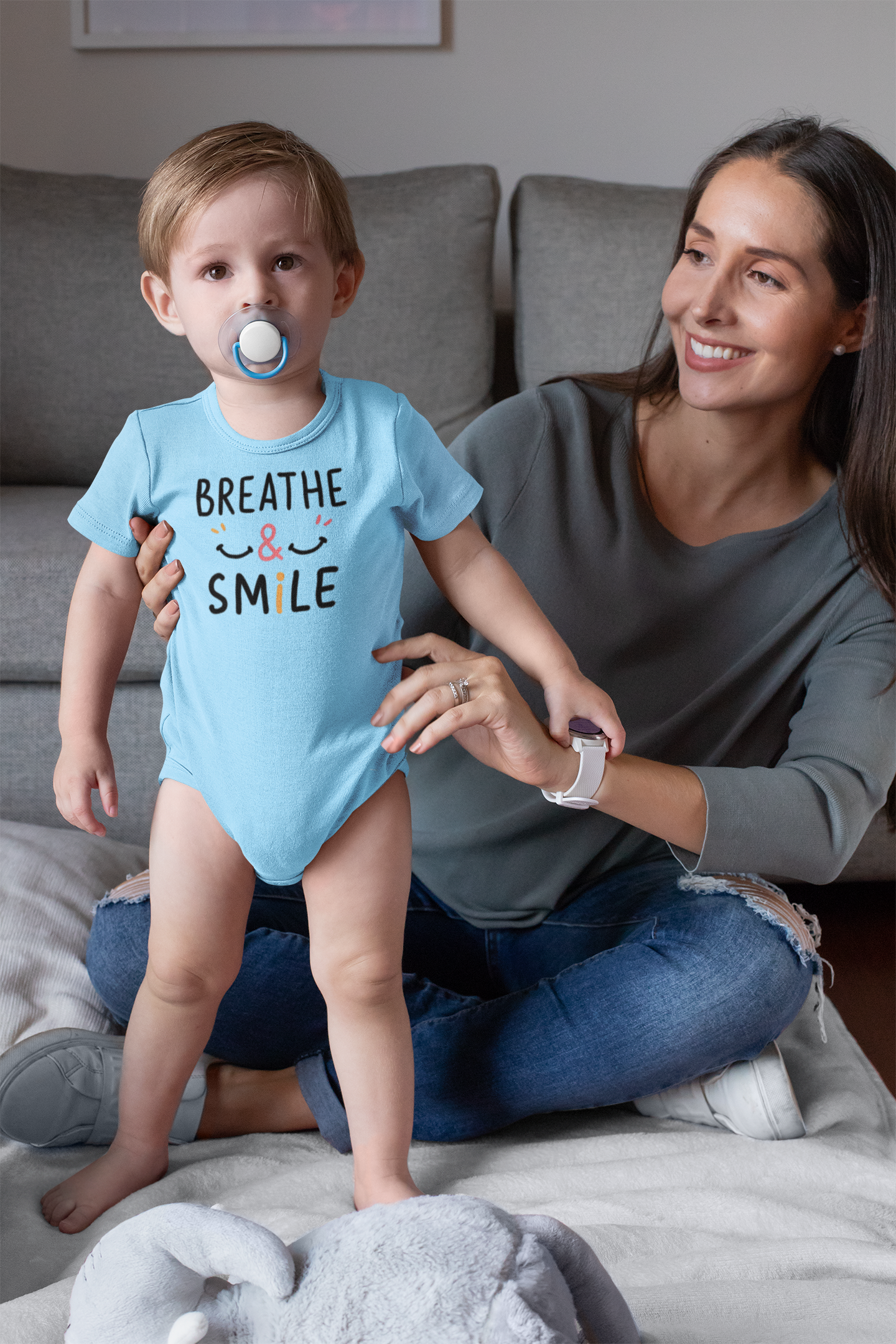 - 🌟 Simple and Uplifting Design: The bold "Breathe & Smile" caption adds a touch of positivity and warmth to your baby’s wardrobe.