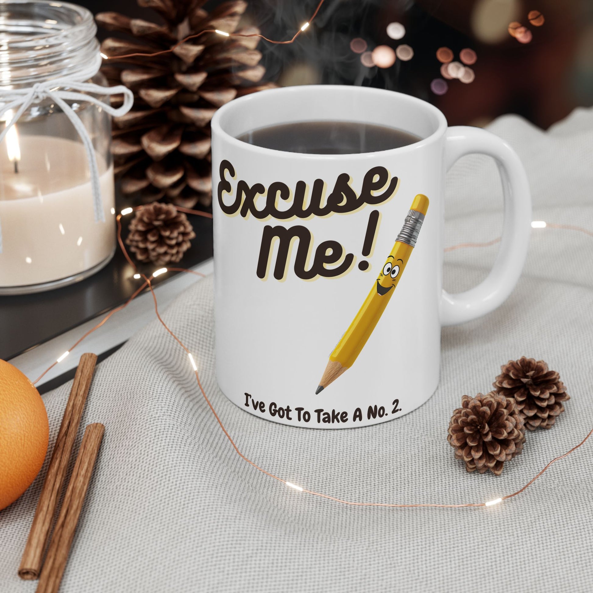Excuse Me I've Got To Take A No.2 Funny Mug|Funny Kid Cup|Funny Teacher Gift Pencil Humor|Potty Humor Gift|Jokester Mug|Stinky Humor Cup