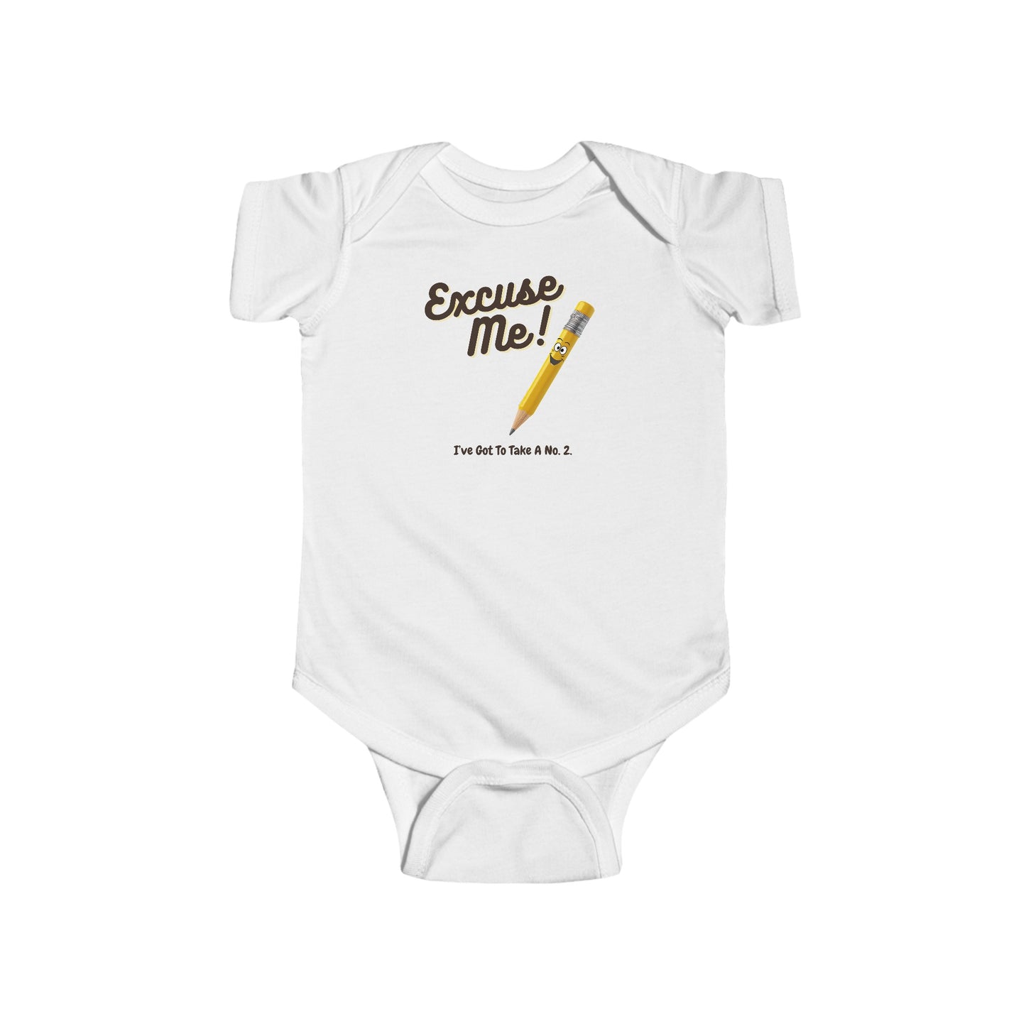 Dress your little one in humor and charm with our "Excuse Me, I've Got To Take A No. 2" Onesie! Featuring an adorable illustration of a No. 2 pencil and a hilariously cheeky caption, this onesie is perfect for parents who love a good pun (and a laugh during diaper duty).
