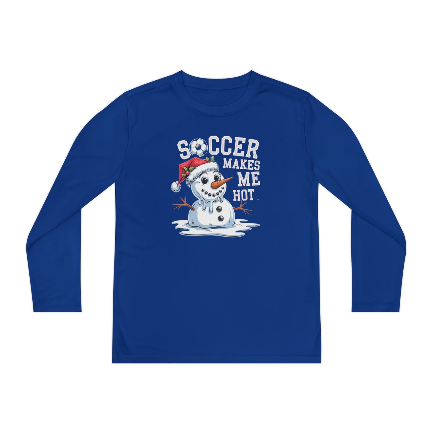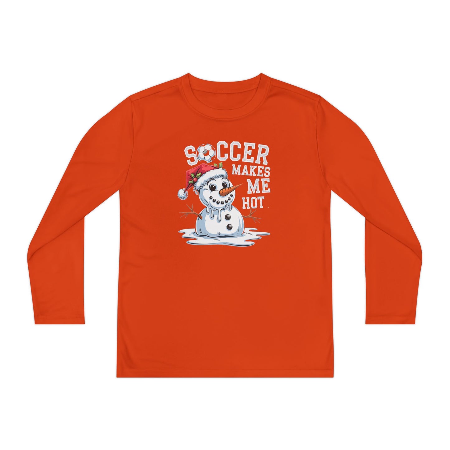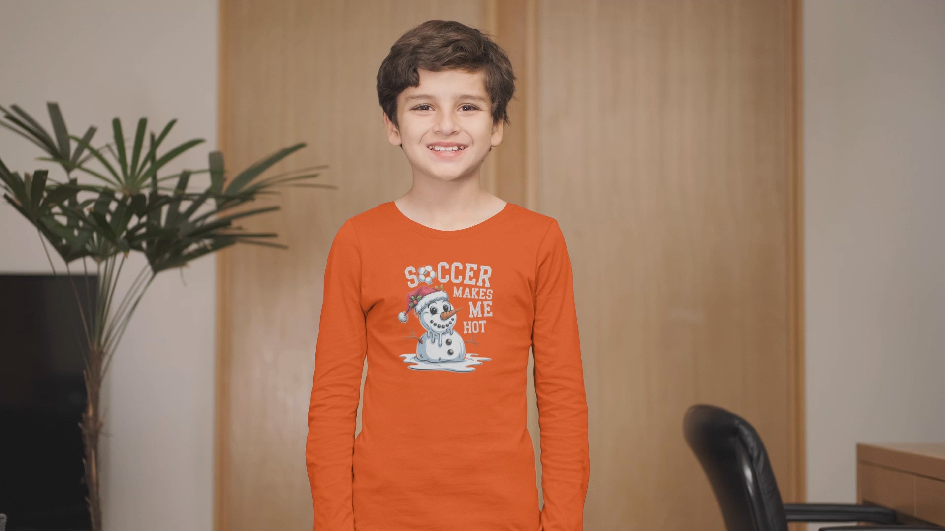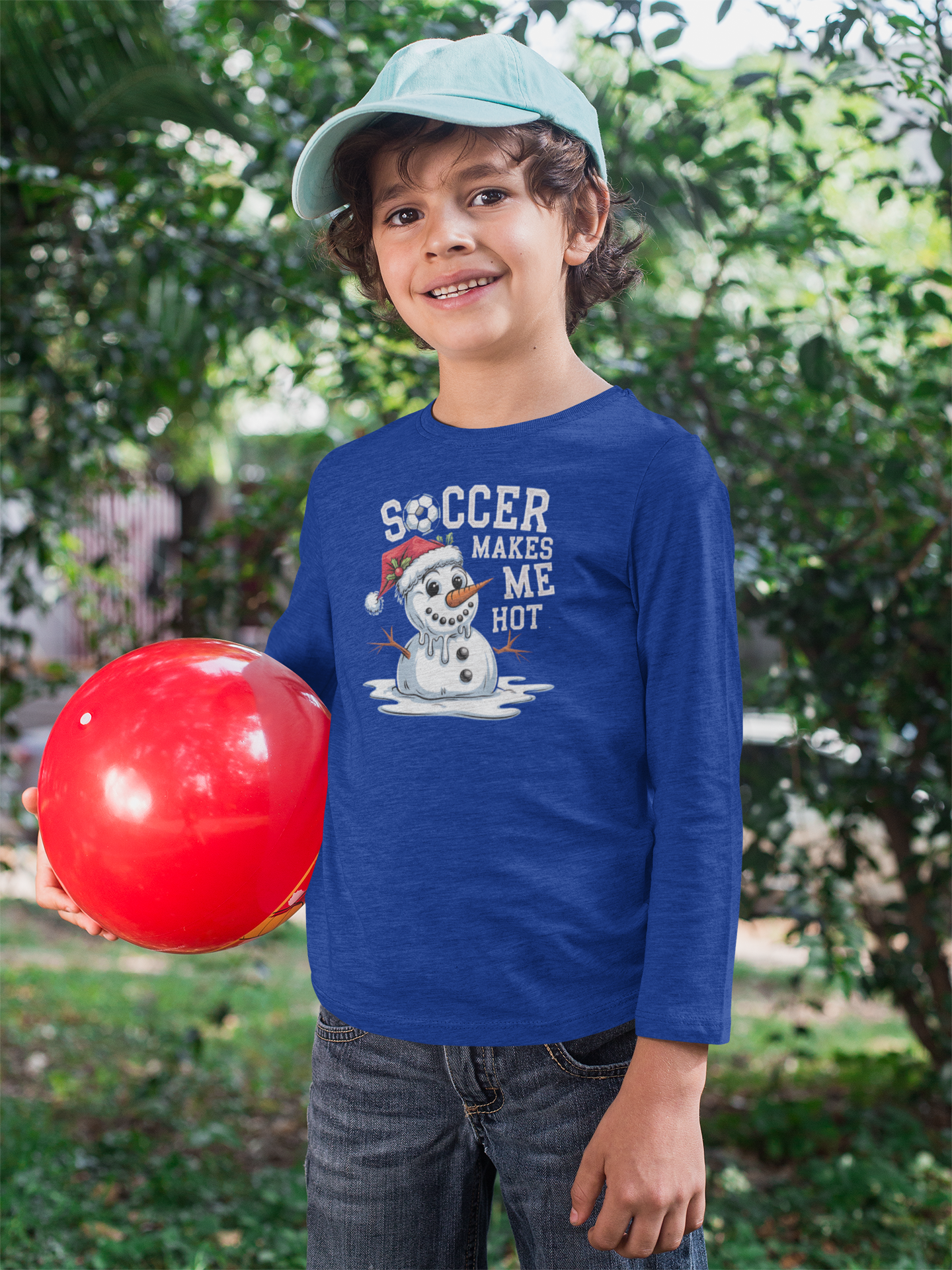 Soccer Makes Me Hot Kids Long Sleeve Holiday Shirt|Funny Soccer Shirt|Snowman Soccer Shirt|Best Kids Soccer Shirt