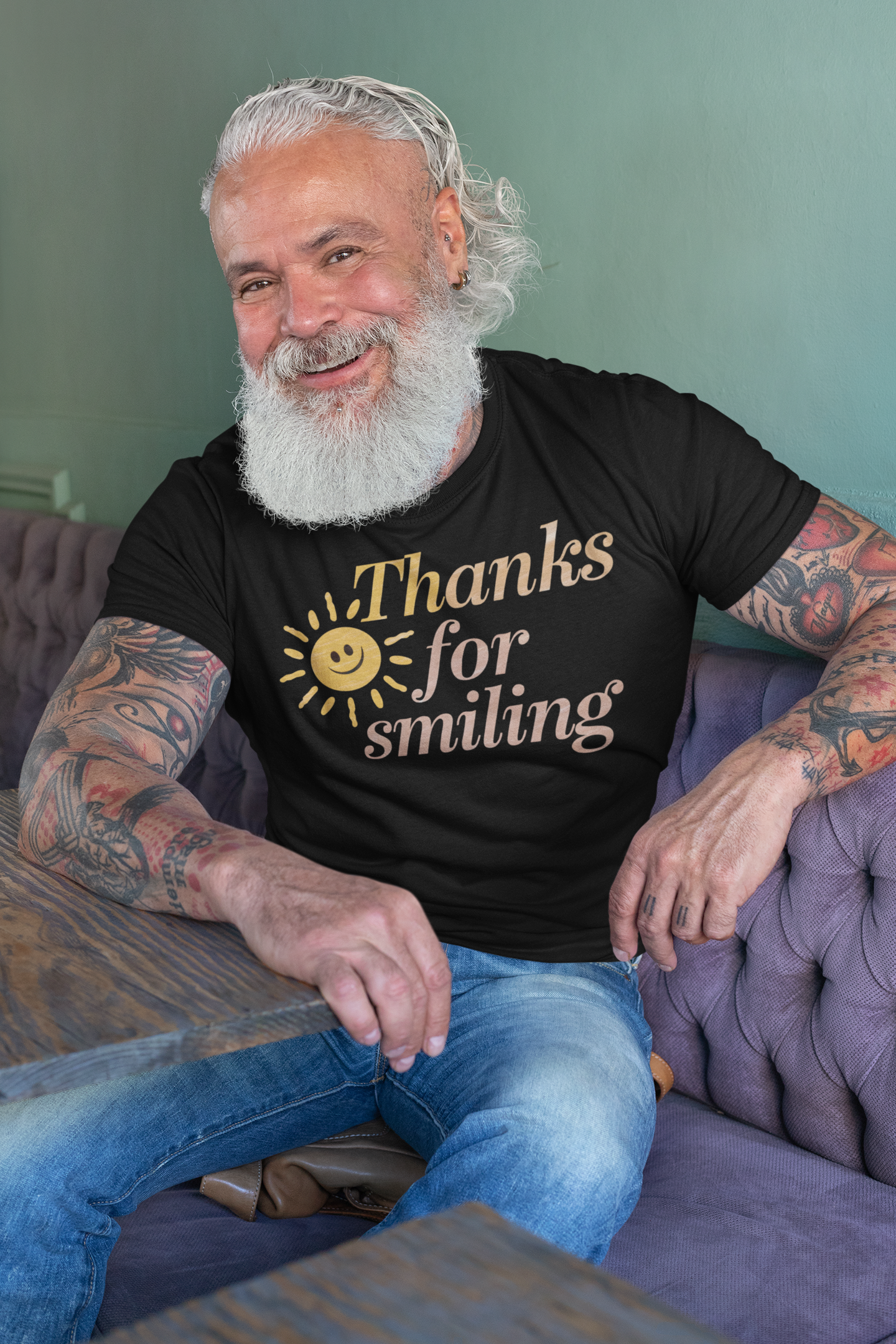 Brighten your day—and everyone else’s—with this uplifting t-shirt! Featuring a cheerful sun graphic and the warm caption "Thanks for Smiling," this tee radiates positivity and is perfect for spreading good vibes wherever you go.